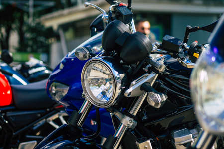 Limassol Cyprus May 21, 2020 Closeup of a motorcycle parked in the streets of Limassol in Cyprus island