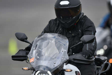 Motorcyclist CloseUp on the Road in Summer. High quality photo