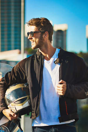 Everyone loves a biker. Shot of a young man riding a motorbike through the city.