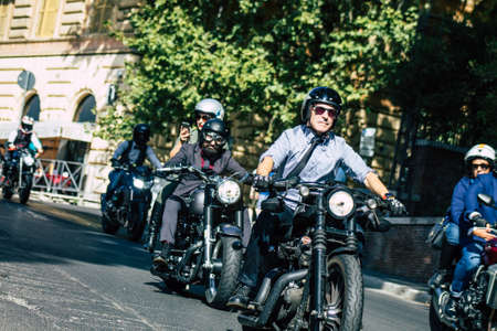 Rome Italy September 29, 2019 View of unknowns bikers rolling through the streets of Rome in the afternoon