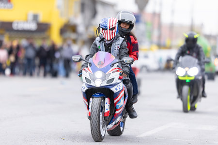 Valle Hermoso, Tamaulipas, Mexico - March 18, 2023: City Anniversary Parade, Members of the Bikehermoso motorcycle club displaying their bikes at the parade