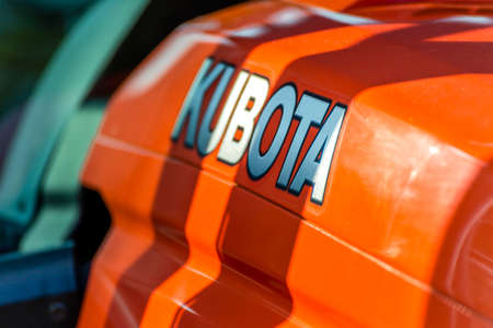 LUGO, ITALY - September 11, 2018: light enlightening KUBOTA logo on a tractor body