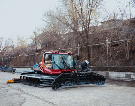 close up details of new lawn tractor, industrial tools for landscaping