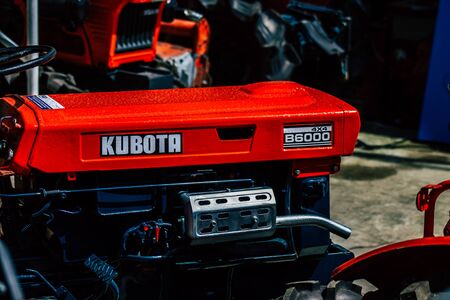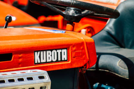 Limassol Cyprus March 24, 2020 Closeup of Kubota tractor parked in the street of Limassol in Cyprus island