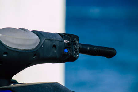 Limassol Cyprus May 21, 2020 Closeup of a motorcycle parked in the streets of Limassol in Cyprus island