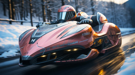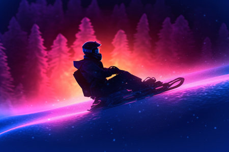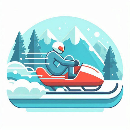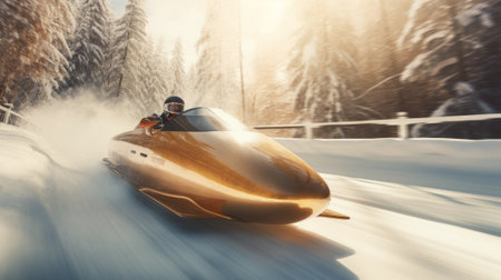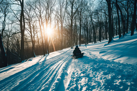 A person sledding down a snowy hill on a winter day created with Generative AI