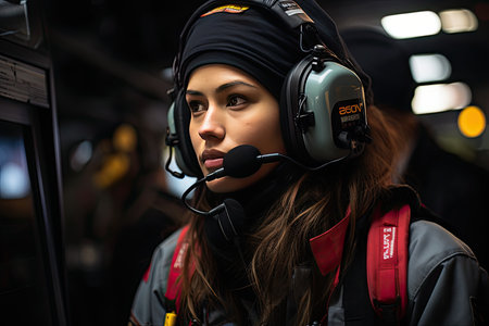Pilots in action, communicating by radio during the race., generative AI