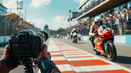Motorbike Racing Action At The Circuit With Photographer Capturing The Moment