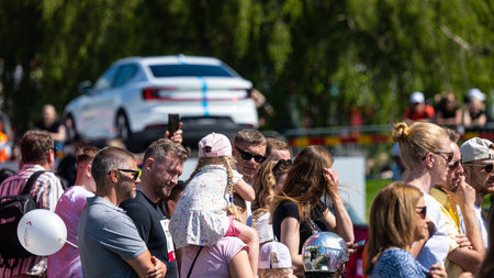 Gothenburg, Sweden - May 13 2023: People looking at a half marathon race