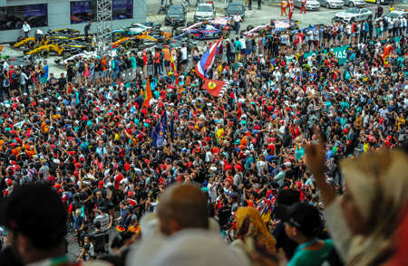 KUALA LUMPUR, MALAYSIA - OCTOBER 01, 2017 : Formula one (F1) fans celebrate on track for last race during Malaysia Grand Prix at Sepang International Circuit.