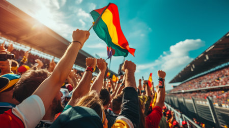 Exciting sports event fans cheering at stadium celebration atmosphere enthusiastic crowd