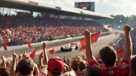 Excited Fans Cheering for Ferrari During a Race at the Grand Prix Track
