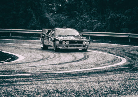 SAN MARINO, SAN MARINO - OCT 21 -2017: LANCIA RALLY 037 old racing car rally THE LEGEND 2017 the famous SAN MARINO historical race