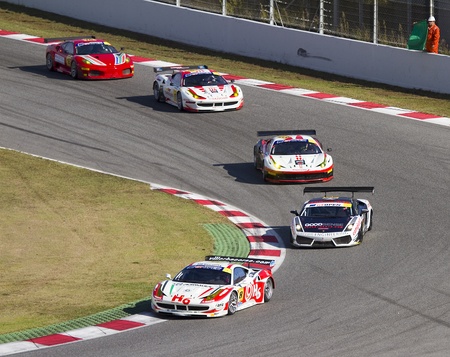 Unidentified drivers racing at International GT Open, on October 30, 2011, in Circuit de Catalunya, Barcelona, Spain