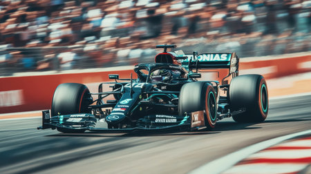 high speed photo of a formula one racing in cirtuit. beautiful Generative AI AIG32