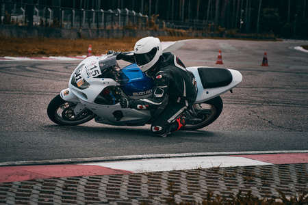 10-05-2021 Lithuania, Kaunas Moto rider, Motorcyclist rides at fast sport bike.