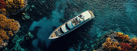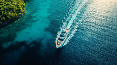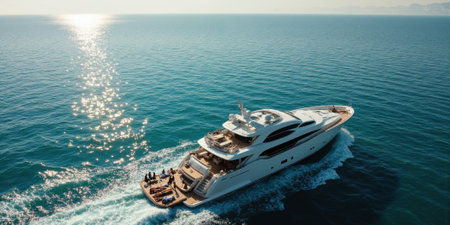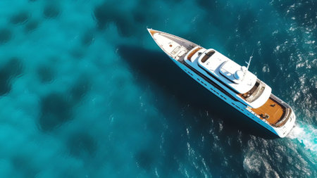aerial view of a luxury yacht gracefully cruising the clear blue waters, offering an unparalleled experience of sea exploration.