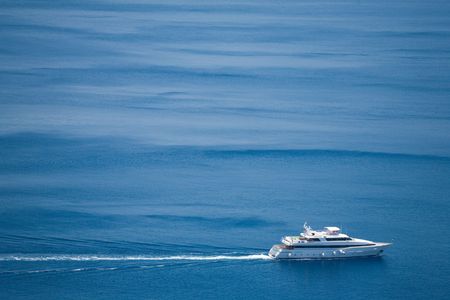 Aerial view of luxury yacht in the sea. Luxury yacht in the sea.