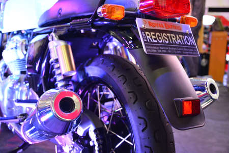 PASIG, PH - MARCH 9 -Â Royal Enfield cotinental gt back part motorcycle at Ride Ph motorcycle show on March 9, 2019 in Pasig, Philippines.