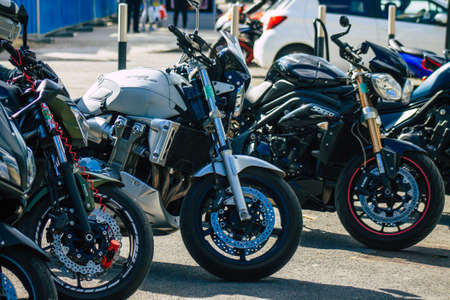 Limassol Cyprus May 14, 2020 Closeup of a motorcycle parked in the streets of Limassol in Cyprus island