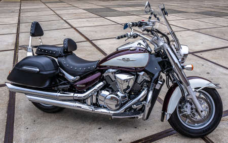 March 7, 2021 - Amsterdam, Netherlands: Suzuki Intruder motorbike on display with shiny chrome parts