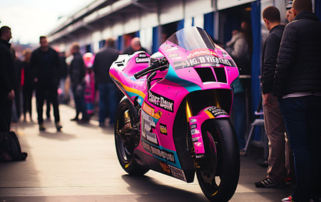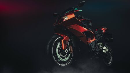 Racing mortorbike neon light backgroud. Race mortorcycle fast transportation.
