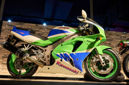 Kobe / Japan - February 17, 2018: Kawasaki Ninja ZXR-750 sport motorcycle exhibited in the Kawasaki museum (Kawasaki Good Time World) in Kobe, Japan