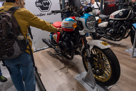 Verona, Italy : 2025 01 24 MBE Motor Bike Expo Custom Motorbike and Custom Muscle Car Event Custom Chopper Motorcycle on Display. High quality photo