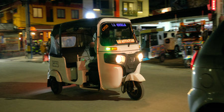 tuk tuk speeding at night in Guatape, Colombia