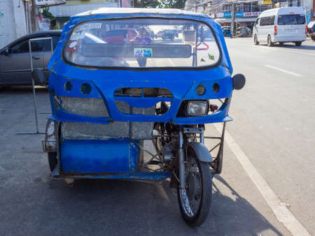 Palawan, Philippines - September 26, 2018: Blue homemade tricycle motorbike in Philippines
