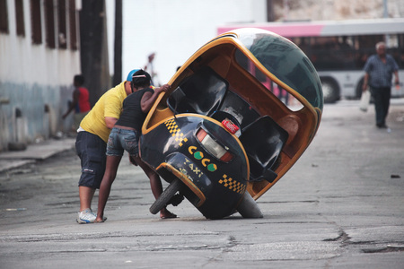 repair coco taxi with the creativity of the Cubans Havana Cuba