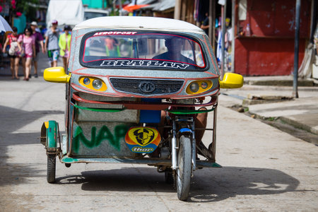 EL NIDO, PHILIPPINES - FEBRUARY 2, 2014 :Tricycle motor taxi, Philippines inexpensive transport service. Tricycle motor taxi are the most popular means of public transportation in the Philippines.