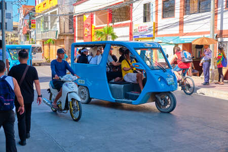 Boracay, Philippines - Jan 22, 2020: Public transport on Boracay island. The tricycle carries passengers.