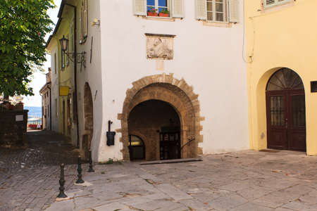 Beautiful scene inside an old European town in Slovenia