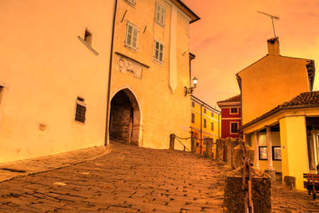 View of Motovun town street at sunset, Istria. Croatia