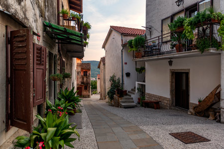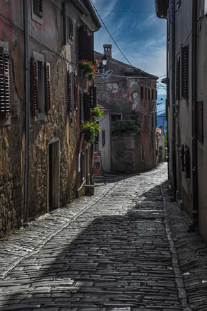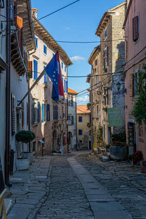 Typical street scene of the medieval town of Groznjan on the Istrian peninsula without people