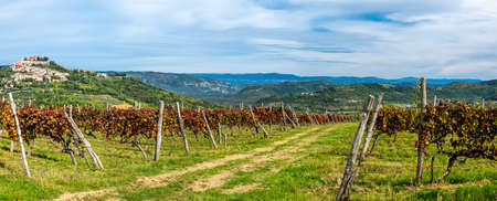 A landscape of autumn vineyard to the town Motovun, Istria, Croatia