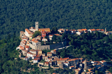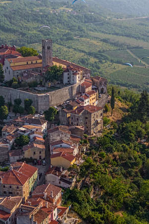 Old mediterranean town Motovun with the surrounding countryside on the peninsula of Istria, Croatia, Europe.