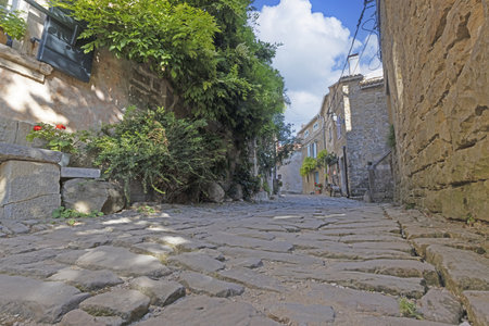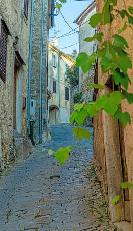 Picture from the historic town of Groznjan in Istria with idyllic cobbled streets and buildings made of natural stone during the day