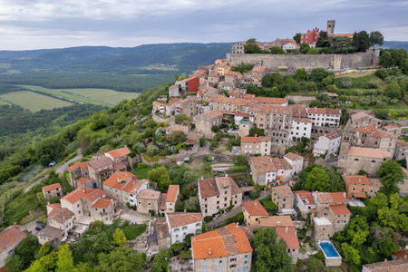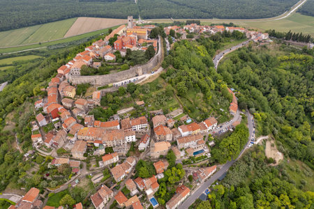 Aerial view of the city Motovun in Istria, Croatia, and the surrounding landscape