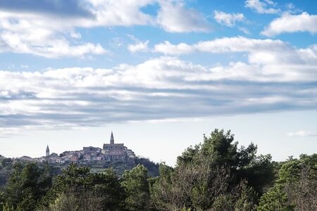 Scenic view at famous Motovun town in Istria region, near town Rovinj. luxury travel destination in Croatia, Europe. Selective focus.