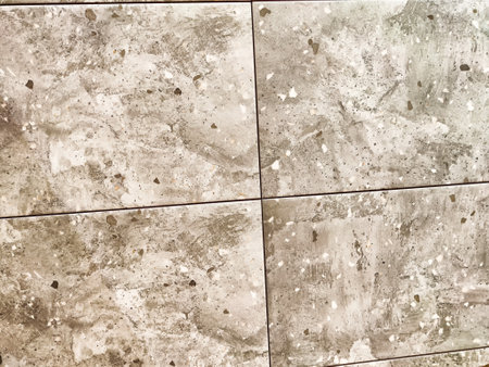 Interior bathroom tiles tiles. Image of interior flooring with grey beige pavement slabs.