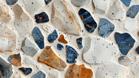 Detailed texture of a terrazzo surface featuring marble, quartz, and golden stone pieces.