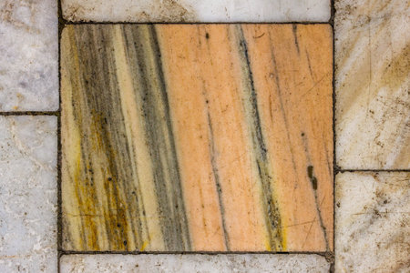Worn Marble Floor Tile with Red, Yellow and White Tiles