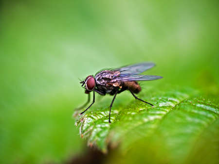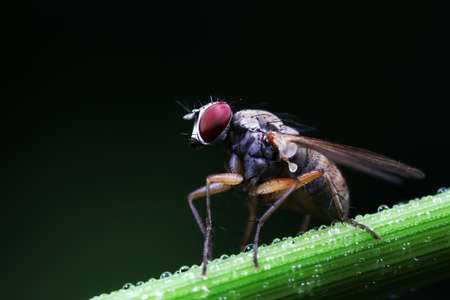 Housefly close up Macro shot. The housefly is a fly of the suborder Cyclorrhapha, and has spread all over the world as a commensal of humans. It is the most common fly species found in houses