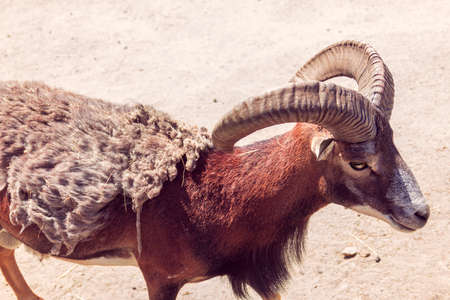 European mouflon on the sand, close-up
