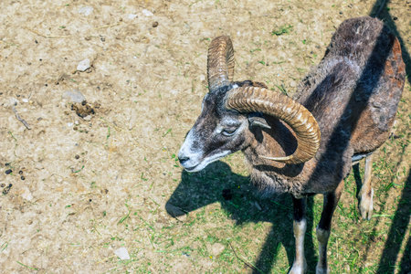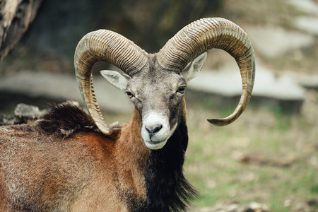 Portrait of a mouflon - Male mouflon with magnificent horn