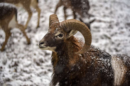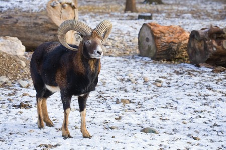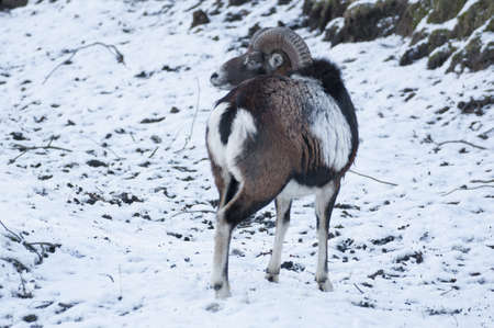 Young mouflon outdoors in a winter day