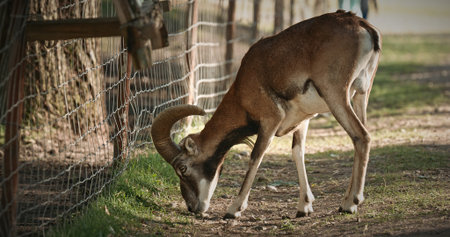 European mouflon Ovis orientalis in a nursery in Nitra, Slovakia.