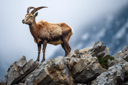 Ibex in its natural habitat, wildlife photography. Generative AI